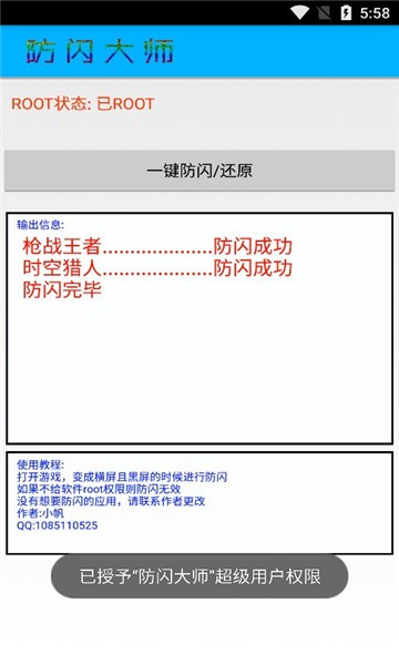 2.点击一个按钮闪烁。如果不给软件ROOT权限,反闪就无效。