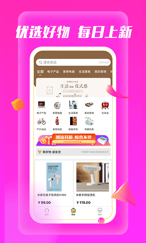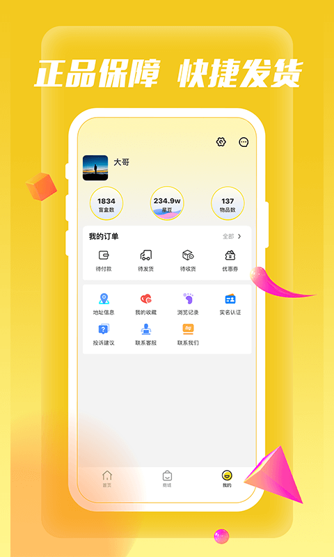 快乐星球是一款时下流行的年轻人购物软件,潮物,手办,更有各式各样的数码产品等你来拆!快乐星球是你无限惊喜与期待的快乐源泉,在这里能够与玩家们在这里互动体验,自行设计打造属于自己的星球家园,为自己找寻到你自己的家园,很多领域都能够设定和处理,然后按照自己的想法来完成各种设计打造!快来下载吧!
