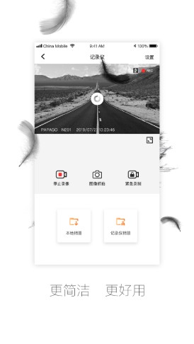 第一步您需要将手机与记录仪设备进行连接,之后打开软件,您就可以看到记录仪了,点击之后进入到管理页面,您可以在这里对记录仪进行设置,您也可以录制您的记录视频,并且可以保存到本地相册随时查看。在车友圈您可以看到很多用户的路上精彩视频哦。