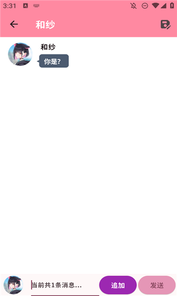 在输入栏输入内容后,点击【发送】按钮,将会建立起一个新的消息盒子。再次编辑新消息,点击【追加】将会在此盒子内添加消息,点击【发送】则会再起一个新的消息盒子