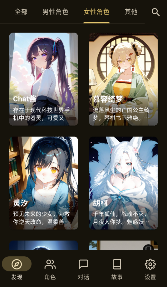 2、不同的智能体,都有自己的立绘和性格,还有独特的背景故事。