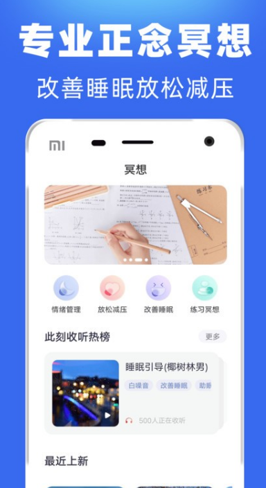 每日冥想是一款十分好用的放松冥想助眠类的app,软件中包含了非常多轻音乐与白噪音等等的助眠信息。可以根据自己的喜好去进行充分的选择,让用户都能在轻柔的音乐中放松自己的心情,通过软件充分提升自己的专注力,让用户能更好的提升专注程度。