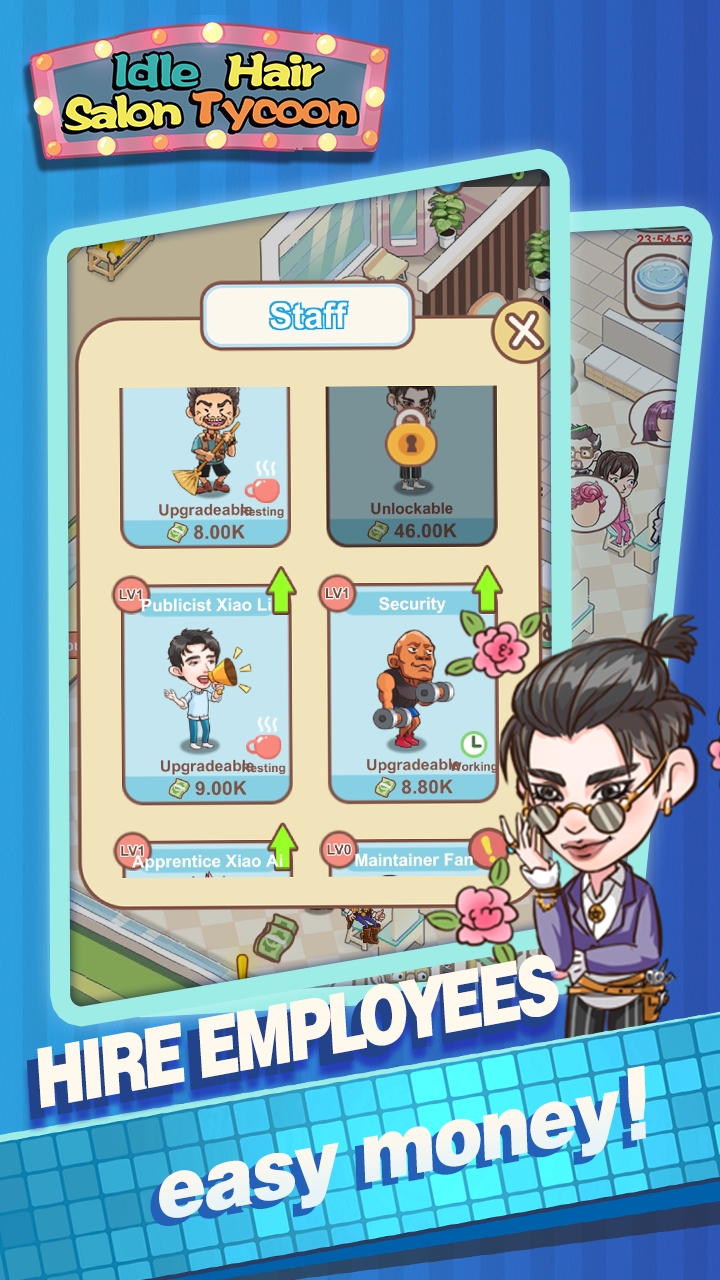 雇用不同技能和特点的员工,包括发型师、理发师、收银员等,帮助自己经营沙龙。
