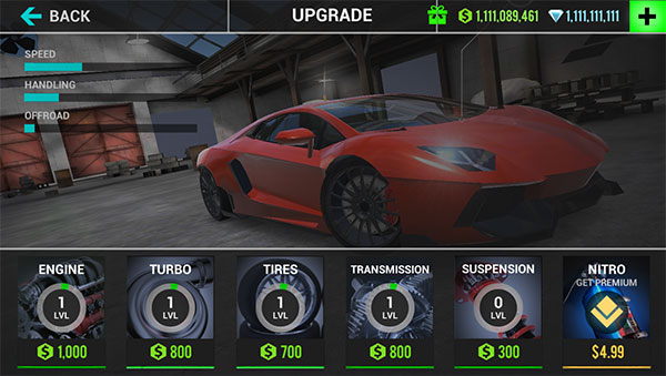 2、可以对赛车每一个部件进行升级,提高赛车性能;