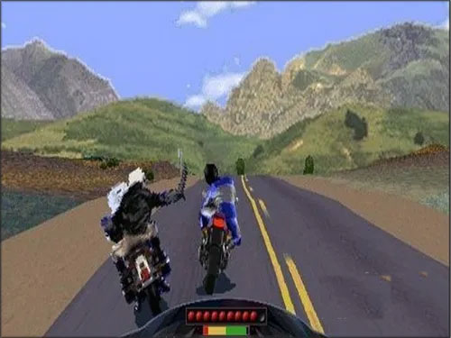 6、用拳击别人。 跑的距离近时,也可以用拳击,将对方打到边上,他的摩托碰到建筑物后,就会倒下,有时系统也会给你木棍或铁鞭,当你拥有木棍或铁鞭后,有时在与对手激烈的打斗中你手中的武器可能会被对方抢走。
