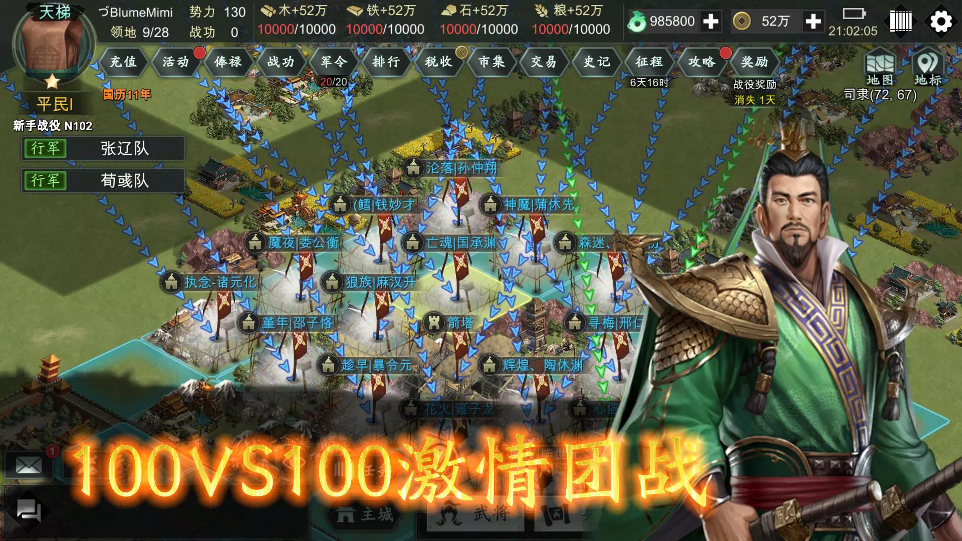 皇城三国是一款全新的快节奏即时战略手游,以三国为背景,将策略 MOBA 元素与 100vs100 的战斗模式相结合,带给玩家独特的游戏体验。