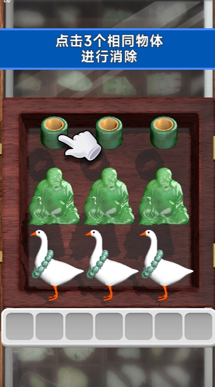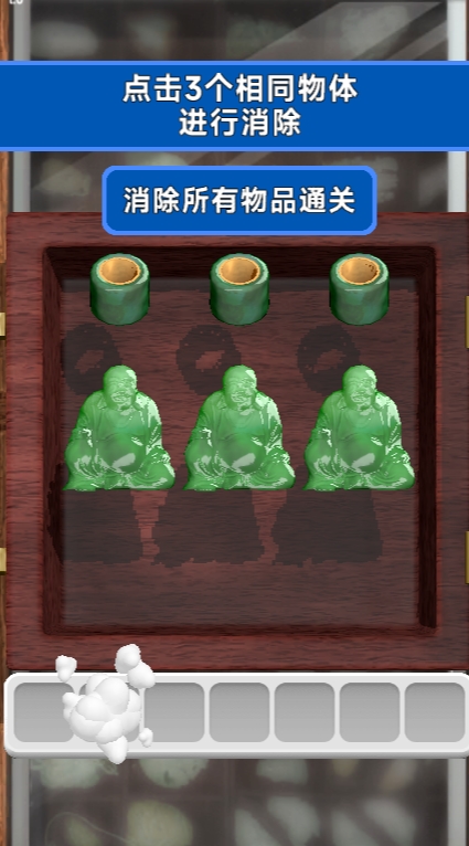 精准点击消除,通过准确点击找到散布在混乱场景中的三个一样物品进行消除。