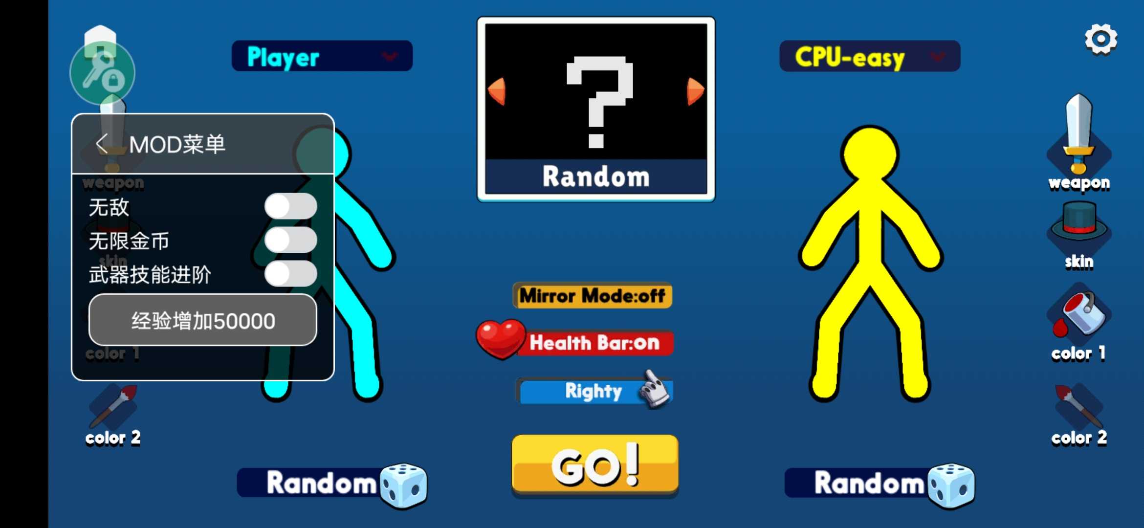 火柴人至高对决辅助菜单游戏是一款经典的火柴人格斗类游戏,它采用了简约卡通的画风,为玩家带来独特的视觉体验。游戏中炫酷多彩的声音和华丽的打斗技能,让玩家在畅爽的格斗对战中感受无比刺激。