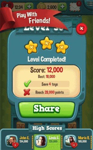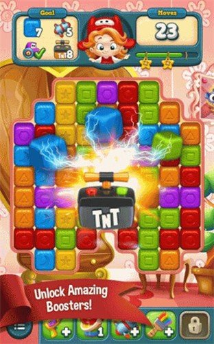 通过消除玩具完成各种关卡挑战,解锁更多关卡内容。