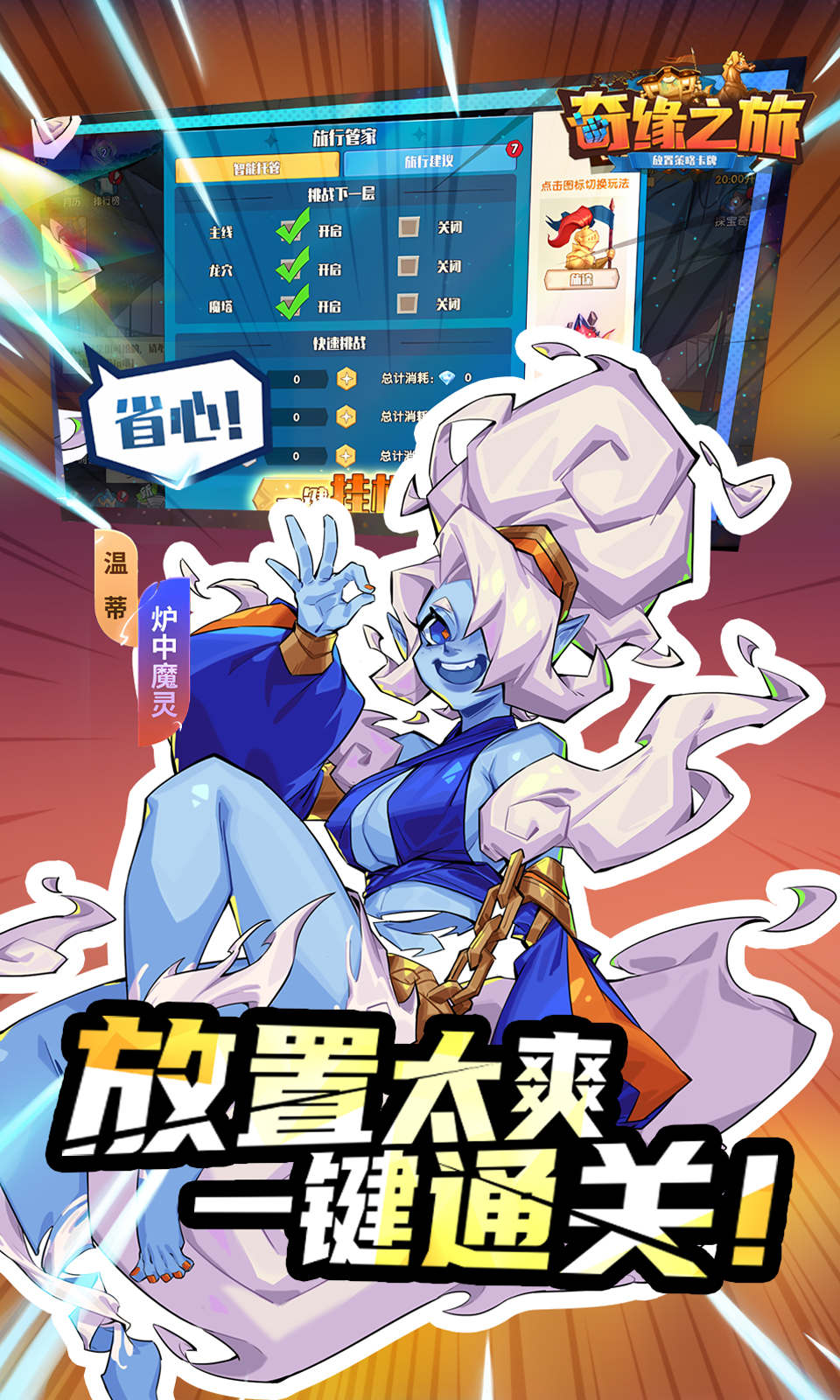 奇缘之旅游戏是一款充满奇幻美式风格的二次元角色养成游戏,它采用了彩漫绘风风格,为玩家呈现出一个绚丽多彩的游戏世界。游戏中独特的三棋盘策略放置卡牌玩法,以及三棋盘战场设计,让战斗更加刺激和富有策略性。拥有六大种族和四大职业,每个种族和职业都有其独特的技能和特点。玩家可以通过羁绊系统,随心自创流派,打造出属于自己的强大阵容,提供了一键通关功能。
