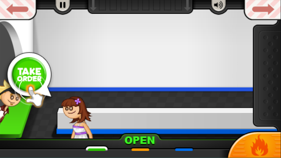 1、首先进入老爹汉堡店2024最新版游戏,第一天开业见到客人就接单