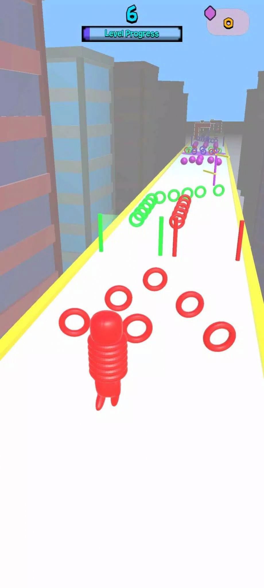 玩家控制角色在跑道上奔跑,并通过套圈的方式收集道具或避开障碍物。