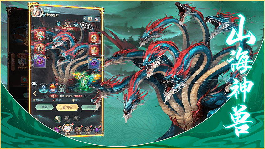 取材于山海经,游戏中收集了大量栩栩如生的异兽角色,每个异兽都有独特的外形和技能。