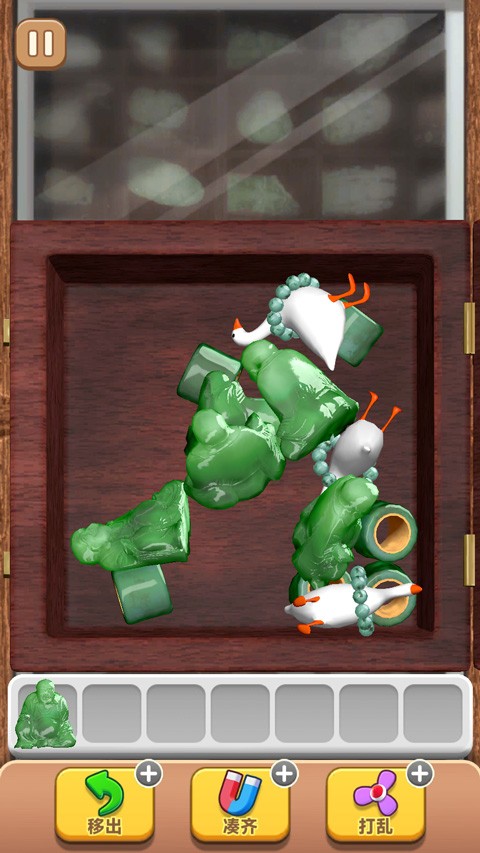 4、玩家可使用道具进行帮助,如“移出”道具,可将3个物体移出格子并放在暂存栏;