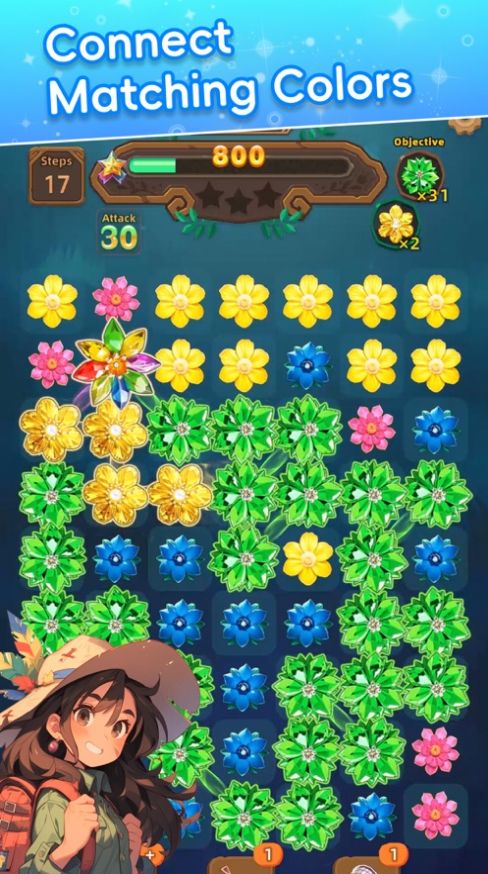 多种特殊花朵,玩家需要有限消除它们,让玩家可以同时消除一定范围内的花朵。