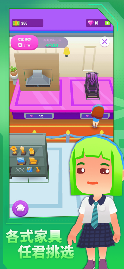 玩家可以自由装扮房间,打造属于自己的小屋,免除广告游玩更加轻松。
