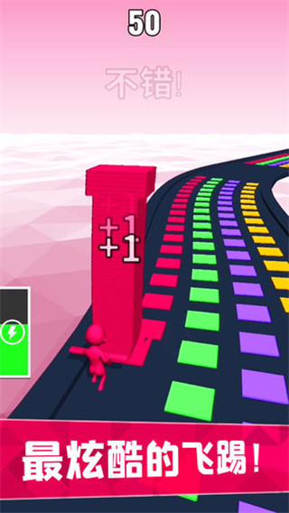 在赛道上巧妙地移动,收集并叠加方块,构建尽可能高的塔。
