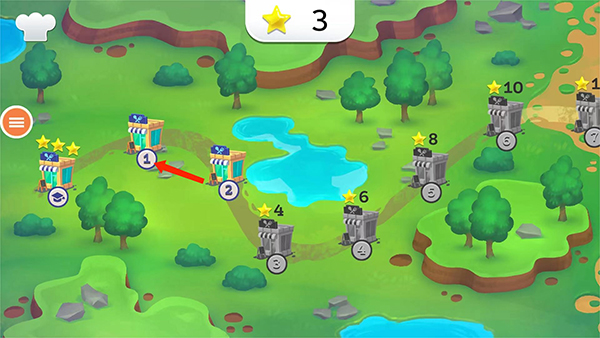 2、进入游戏地图界面,包括关卡和星级,这里以【第一关】为例,