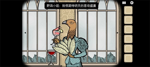5、全部给出鸡尾酒后,随便点击任何一名客人,就会回答说我很期待明天的第一顿晚餐,现在我要先行回房休息了。之后画面切换,天黑。