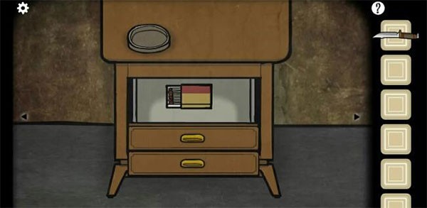 1、进入游戏后,在场景中可以看到一个三层的矮柜子,从柜子上方拿到表面皿,从抽屉里拿到火柴和刀。