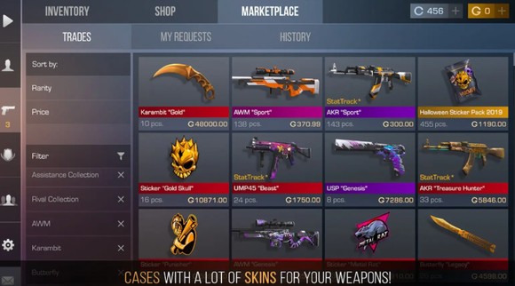 2、然后是第二种方法:开箱,在standoff2手游中,当玩家以MVP的绝佳战绩获得一场比赛的胜利时,游戏系统就会奖励大家一个补给箱。通过购买钥匙开启补给箱就有机会获得包括蝴蝶刀,铬金小刀在内的多种炫酷近战武器,不过需要注意的是,能够开出这些近战武器的概率都很低,且开箱所需要的钥匙只能通过氪金获得。对于非常想要额外刀类近战武器又有一定财力的小伙伴。