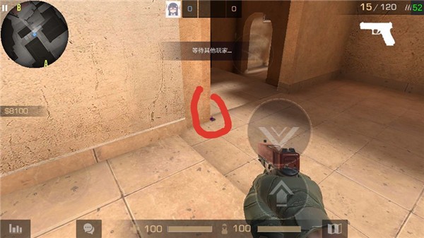 在敌人蹲下射击的情况下上面所讲的卡爆头线就失效了。这时我们就需要快速拉动准心到敌人的头部,确保击杀。这就是拉枪。