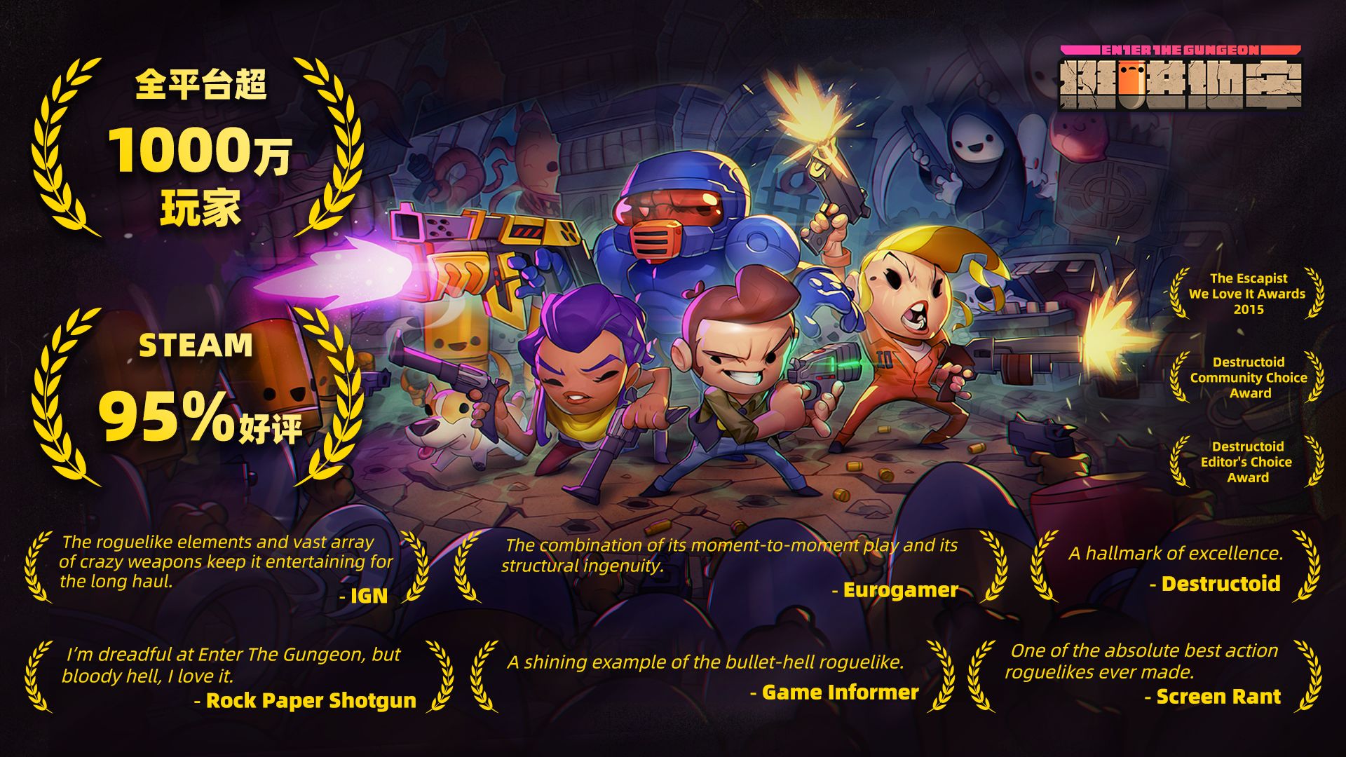 挺进地牢手机版游戏是一款steam百分之95好评的经典肉鸽地牢游戏,这一次你能成功逆天改命吗?在地牢世界里,玩家需要享受原汁原味的肉鸽体验,可以轻松的去享受弹幕射击的乐趣,需要自己的灵活走位,不要轻易死亡,感兴趣的可以来下载挺进地牢手机版游戏体验。