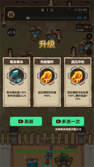 3.每次升级都可以从三个卡片中选出自己最合适的一个技能。