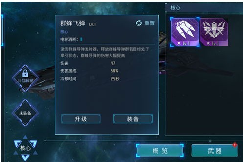 装备或者升级核心,可以让舰船在PVE里的核心技能更强(仅对PVE生效)