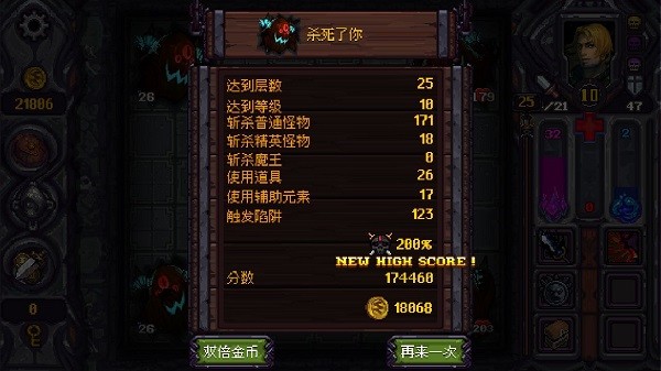 无尽(总结分数*2):无剧情,可突破20层,无难度区别