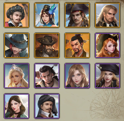中世纪众多知名船长、海盗,分为史诗、完美、优秀、普通四大品质,不同品质的船员,有着不同的属性以及各类搭配羁绊。可在酒馆使用元宝或酒票,将这些伟大船长、传奇海盗招募麾下。能够强有力地提升舰队实力。具体羁绊搭配等细节,将会在进阶篇中专门讲述。