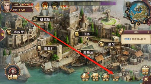 1、点击联盟图标,打开联盟列表;