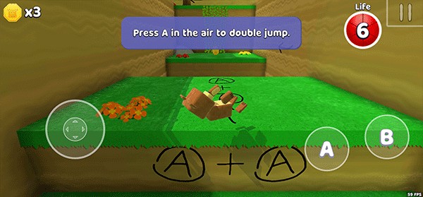 2、左下角轮盘按钮控制超级熊自由移动,右侧屏幕滑动旋转视角,正常情况下A跳跃,B攻击。