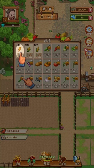点击建造,建造列表内选择耕地!耕地有了,开始种植农作物。