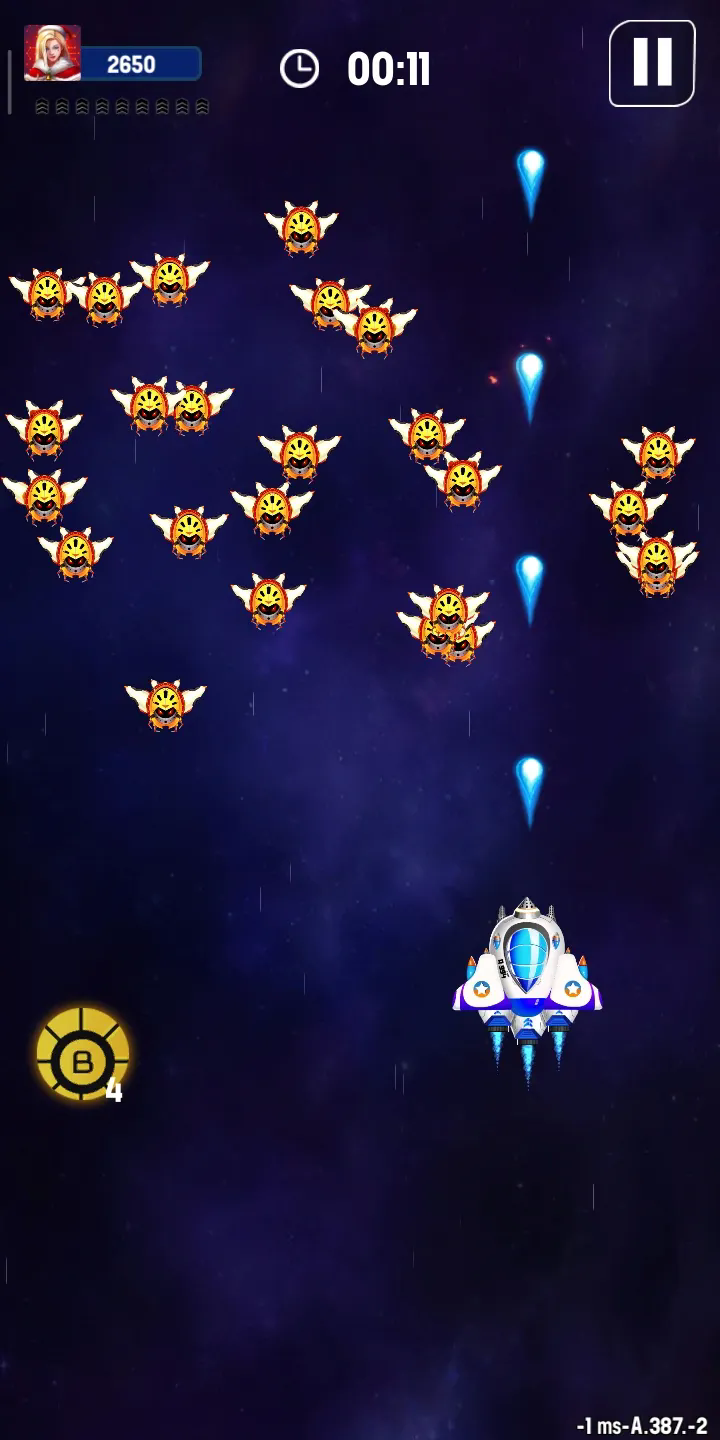 7、当敌机过多或者遇到强大的敌机时,我们可以点击左边的【B】技能按钮触发特殊技能,可以帮助你更快的消灭敌机,
