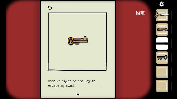 然后这张打完的纸可以翻转,用铅笔给红棕色框框里涂色,不用太规整,一直到获取钥匙为止,大门的锁孔是金色的,然而这个不是大门钥匙,在钥匙孔里你会看到