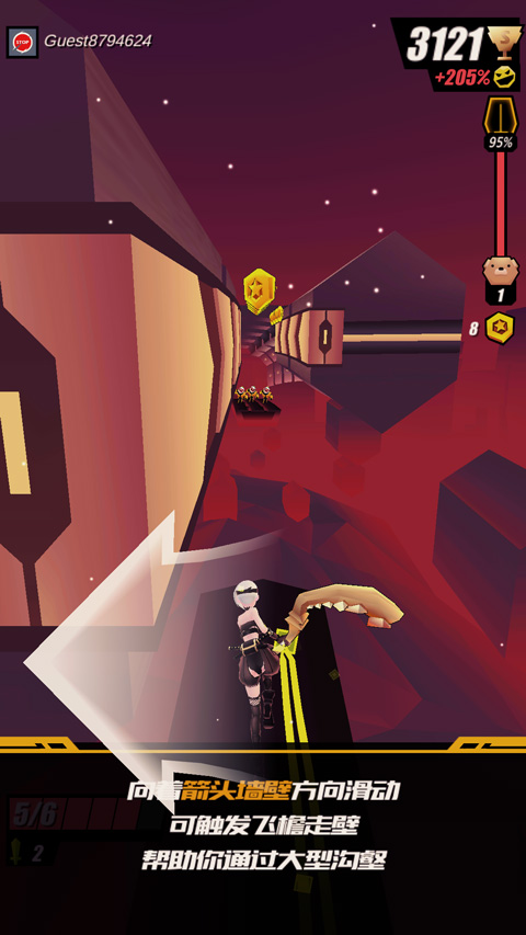 5、咦,前方没有路啦,这时可以左右滑动在带有箭头的墙上行走,哈哈哈有没有飞檐走壁的感觉呢