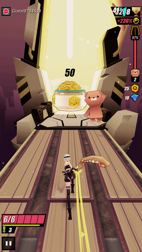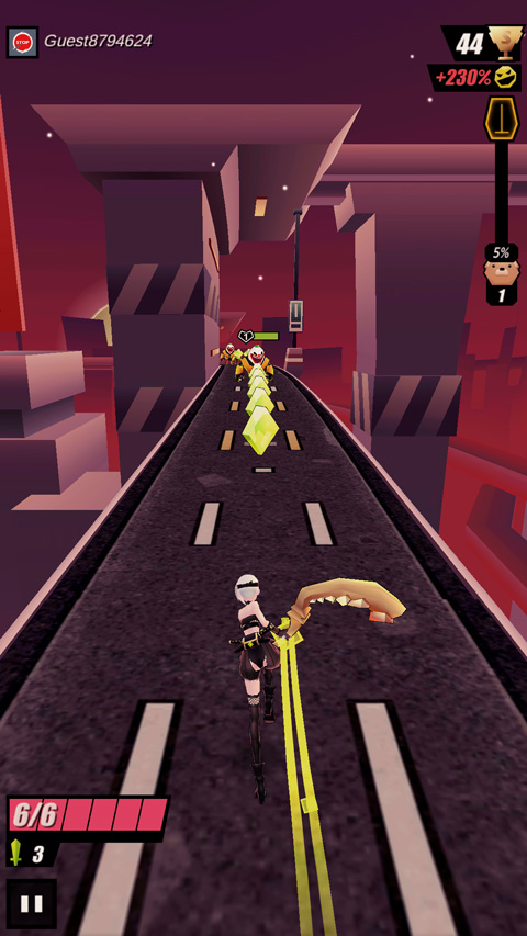 1、战斗元素的跑酷,玩家需要操控少女在跑酷过程中消灭沿途出现的敌人。