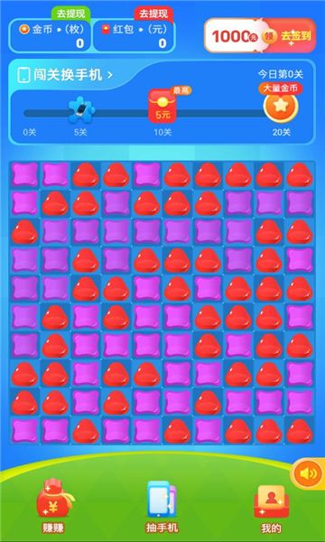 1、提供不同的关卡进行闯关,消除完成游戏中的方块,领取红包福利