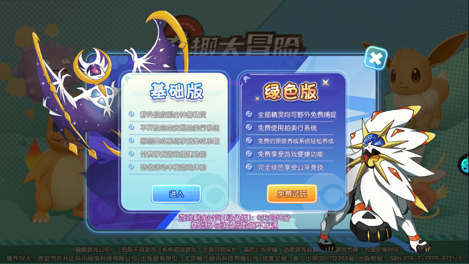 在奇趣大冒险2024年最新版本游戏主页面中,可以切换两种模式板块,基础版和绿色版