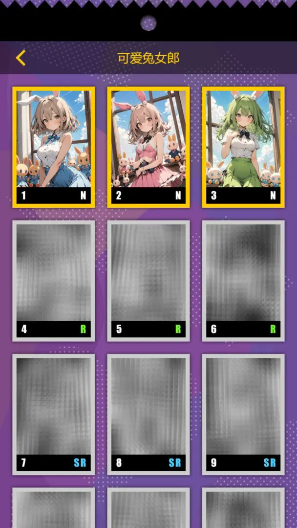 你可以在游戏中收集各种美少女卡片,每张卡片都有不同的立绘风格,带来全新的视觉体验;内置抽盲盒的玩法,赶快下载游戏测试一下你的欧气如何吧!