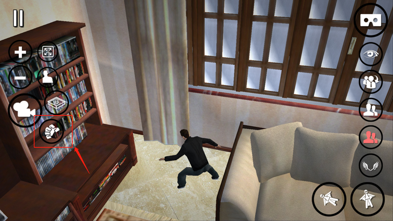 进入女巨人模拟器游戏中,点击下图中圈起来的手掌抓东西的图标,开启控制女巨人并确认就可以
