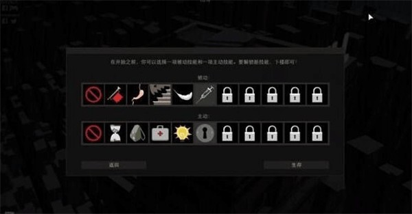 1、打开天空之山,游戏开局的时候可以选择不同的主动和被动技能,玩家需要谨慎选择,