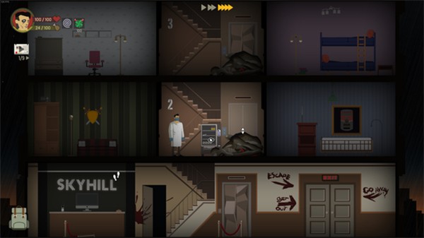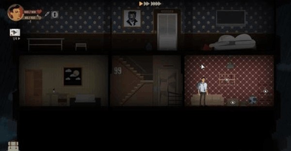 3、每层楼都有楼梯和两个房间三块区域,我们需要一一探索,找到有用的资源和线索,