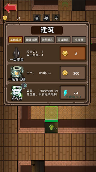 门口放上三个炮台即可。随后当闪电数量够了以后可以开始买矿,就可以不用管床的升级,床只是前期过渡,升级矿和游戏机相辅相成,让你后期升级门和炮没有经济压力。