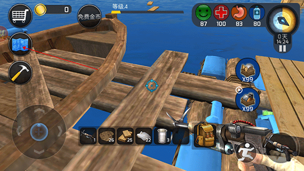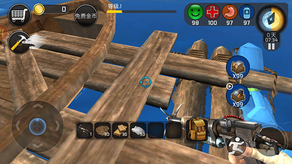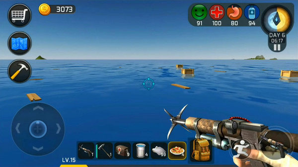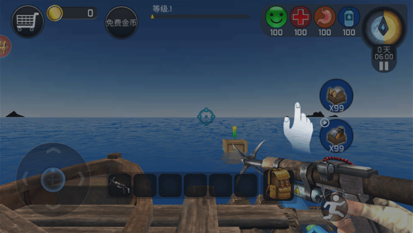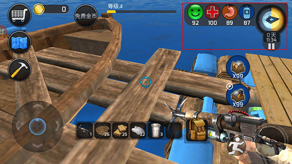 2、开局的资源是有限的,你必须不断的收集资源,维持在海上的生存。