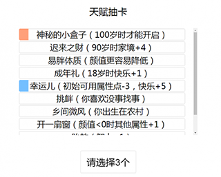 3、每次游玩都会随机抽取天赋,让你的每个人生都各有不同。