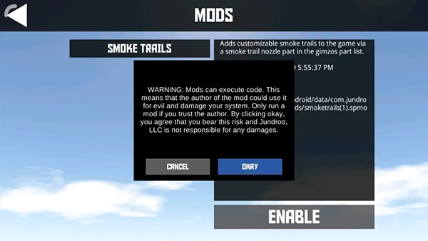 7、重新进入到游戏当中点击mods选项,选择第一个选项,点击okay。