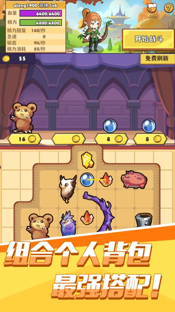 背包传说游戏官网版是一款轻松休闲的放置策略小游戏,在这款游戏采用了Q版卡通的游戏画风,带给玩家轻松有趣的游戏体验,玩家需要通过收集相同的物品完成合成,还有不同的职业,让玩家拥有不同的战斗流派,体验相当丰富的游戏内容。