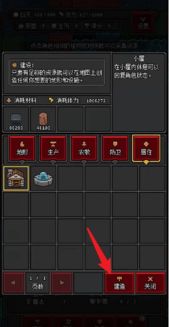 1、进入游戏,需要建造一个“石屋”,如图下所示。